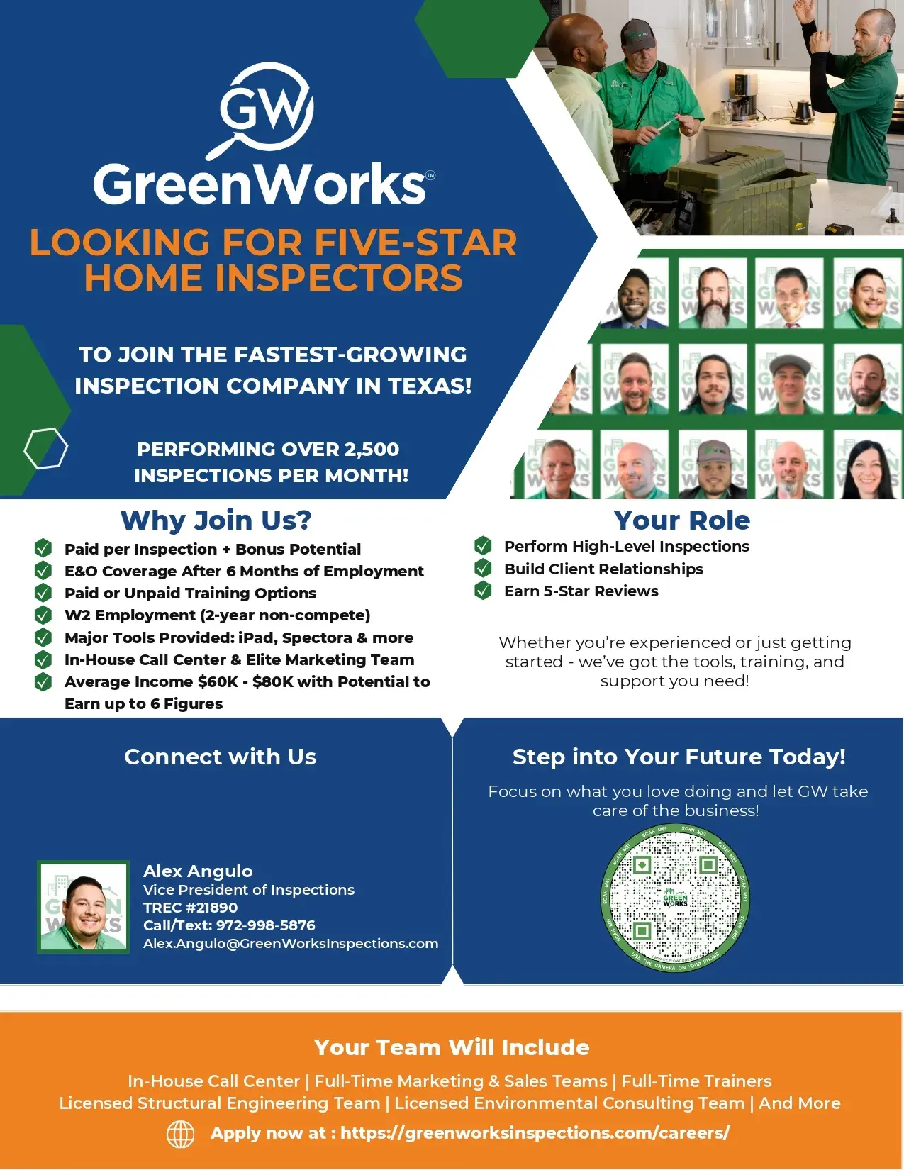 Join the GreenWorks family and be part of a dynamic team committed to excellence in every aspect of their work. We are a Single-Source Solution for Inspection, Engineering, and Environmental services—our mission is to provide peace of mind to our clients through outstanding service, expertise, and a commitment to building long-term relationships. We are always looking for talented individuals who share our values and vision. We prioritize work-life balance and offer entrepreneurial support to help you thrive both personally and professionally.